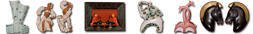 In 1990 the Mid-Centurians began furnishing their "Back-to-the-Fifties" room by shopping garage sales, thrift stores, second hand stores, antique stores, and later eBay. They continue to search today for "treasures" including Relco mosaic figurines, Universal Statuary ethnic figural chalkware, unusual Hyalyn ashtrays, black wire and chalkware wall decor, unique TV lamps, and Mirro Medallion aluminum ware.