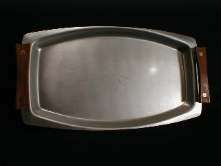 Rectangular handled tray with embossed medallion